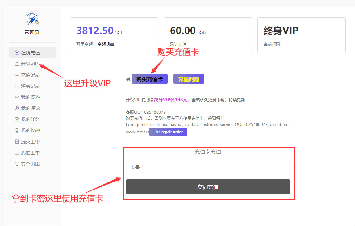 - 购买充值卡->点这里