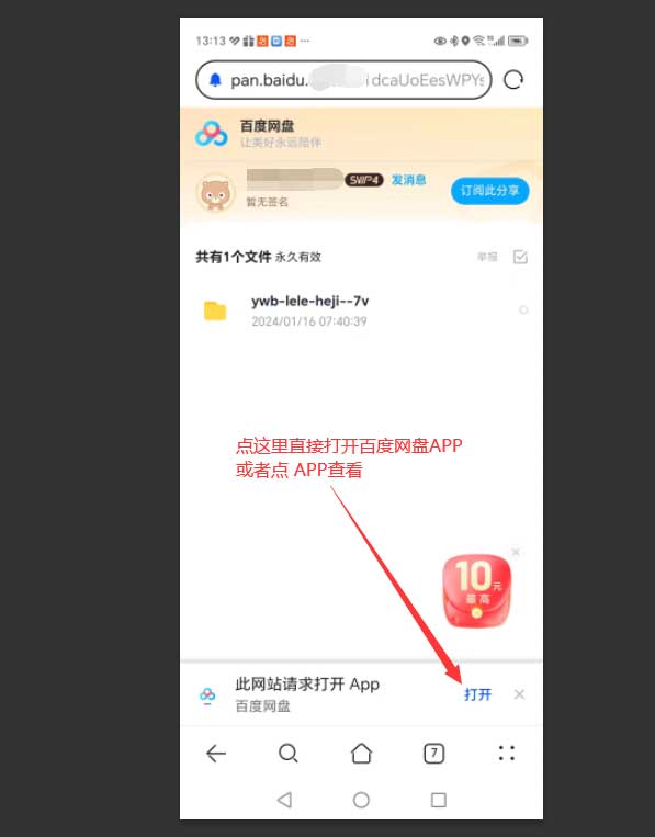 5.直接点击下面的打开网盘APP,如果没有可以选择下面的APP查看